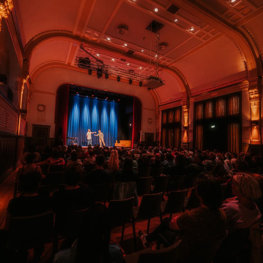 Lachen toch? Op dinsdag 4 juni kregen we antwoord op de vraag of er grenzen zijn aan de grap tijdens het contextprogramma Grenzen van de grap. In de Kleine Zaal van De Vereeniging maakten neerlandicus Ivo Nieuwenhuis en theatermakers Eran Ben-Michaël en Jonata Taal er een humoristische én leerzame avond van!