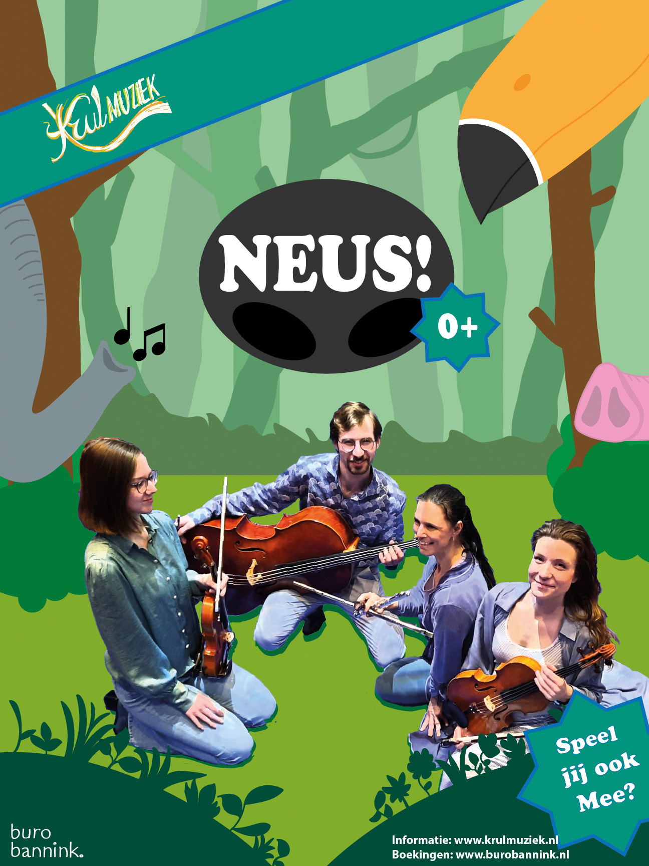 Hoe ziet de neus van de koala eruit? En heeft een flamingo ook een neus? Samen met de muzikanten gaan alle neuzen dezelfde kant op en het muzikale dierenrijk in. De vrolijke klassieke muziek nodigt uit om samen te dansen, te spelen en te klappen.